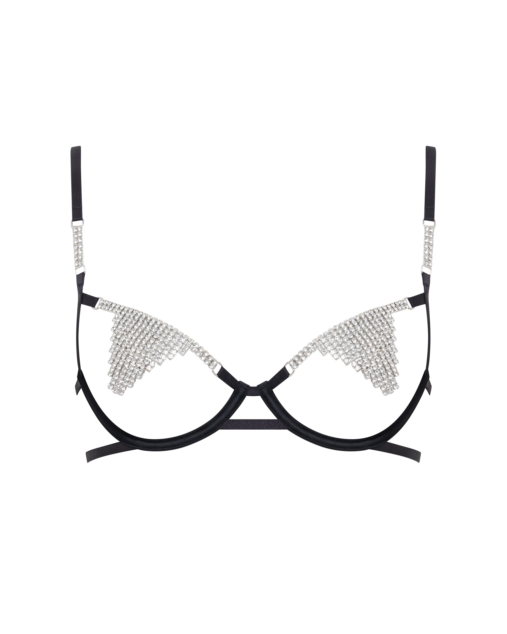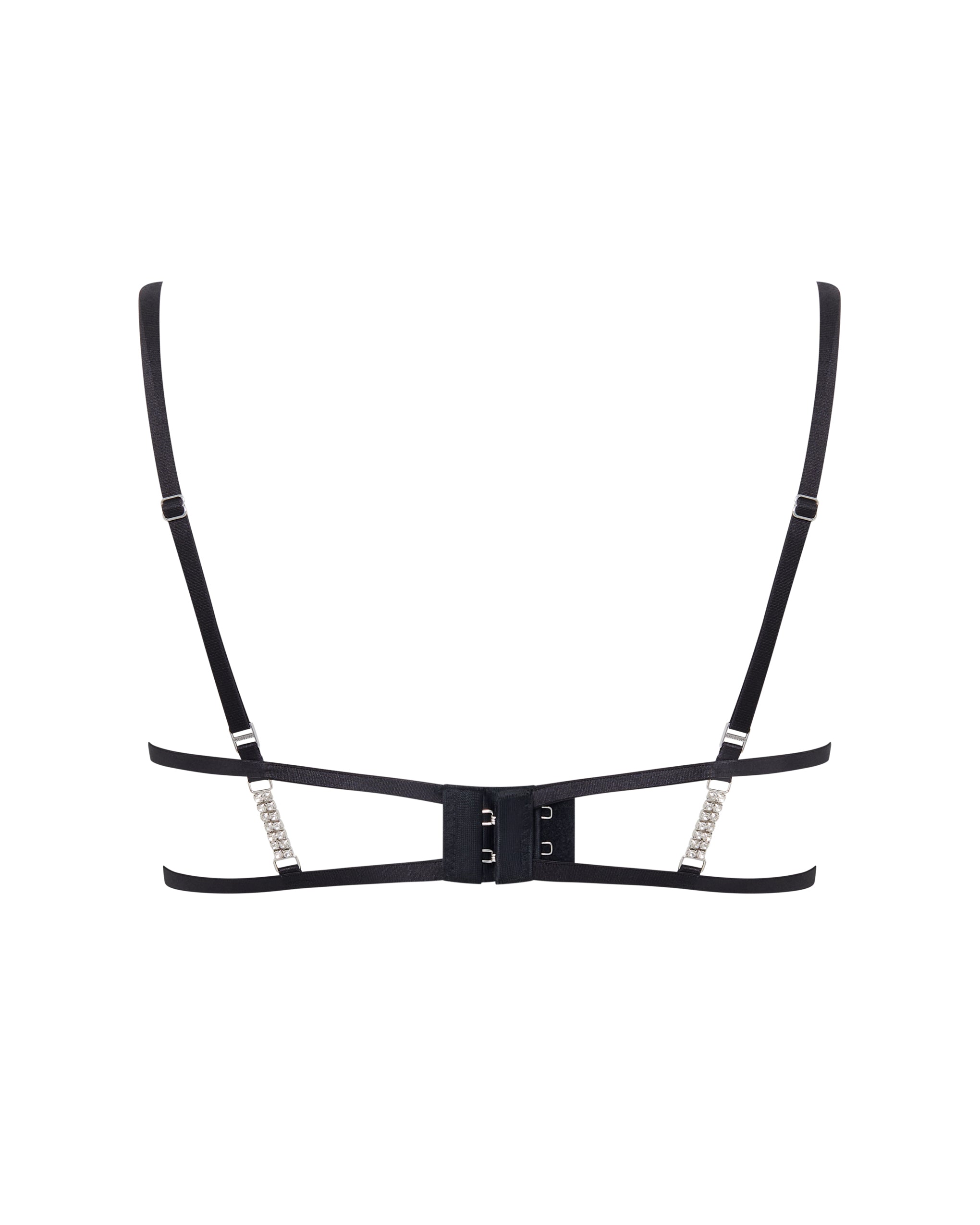 This stunning piece features rhinestone embellishments across the chest, straps, and back, with an open construction and underwiring for support. It's a dazzling party piece that's as functional as it is fashionable.