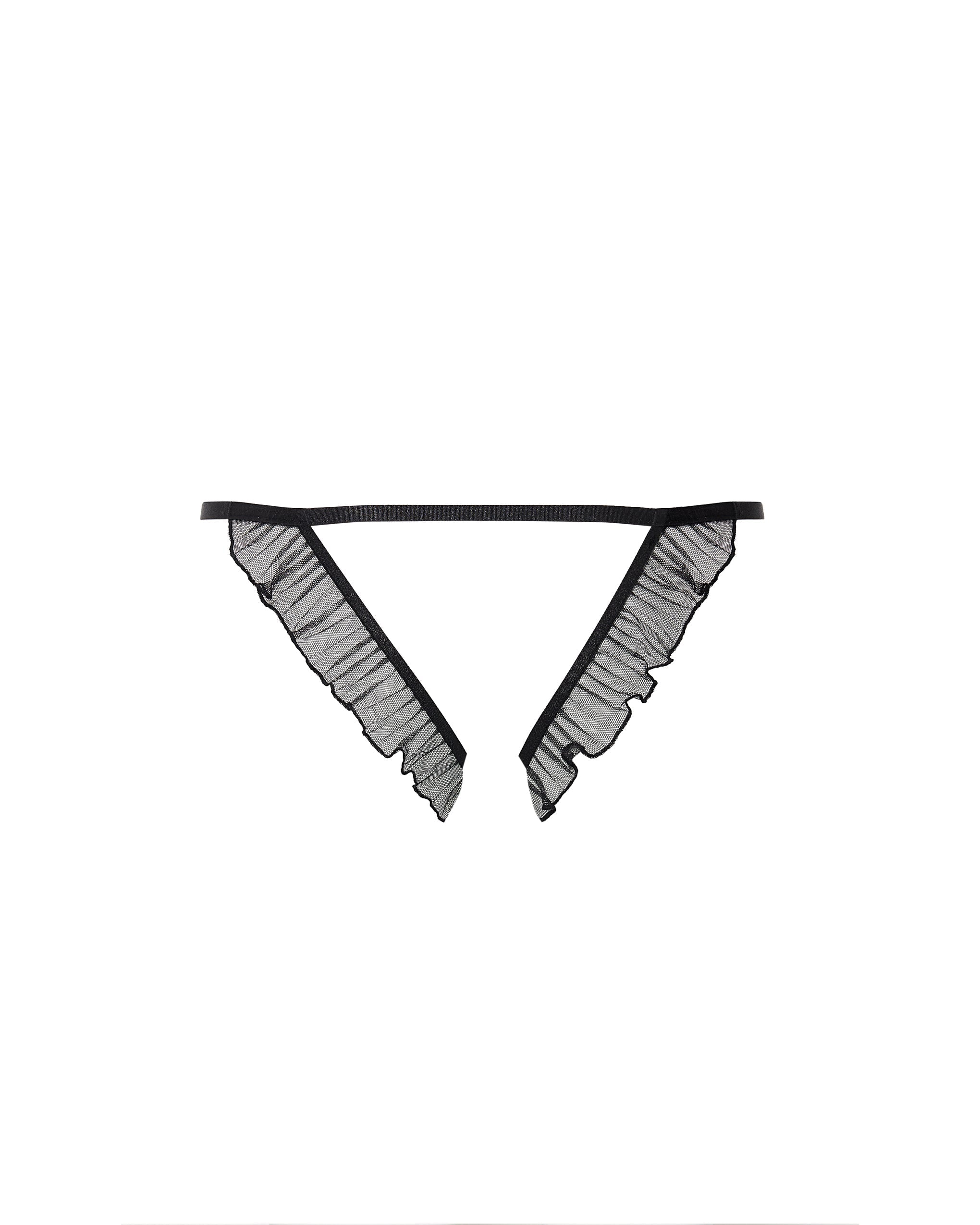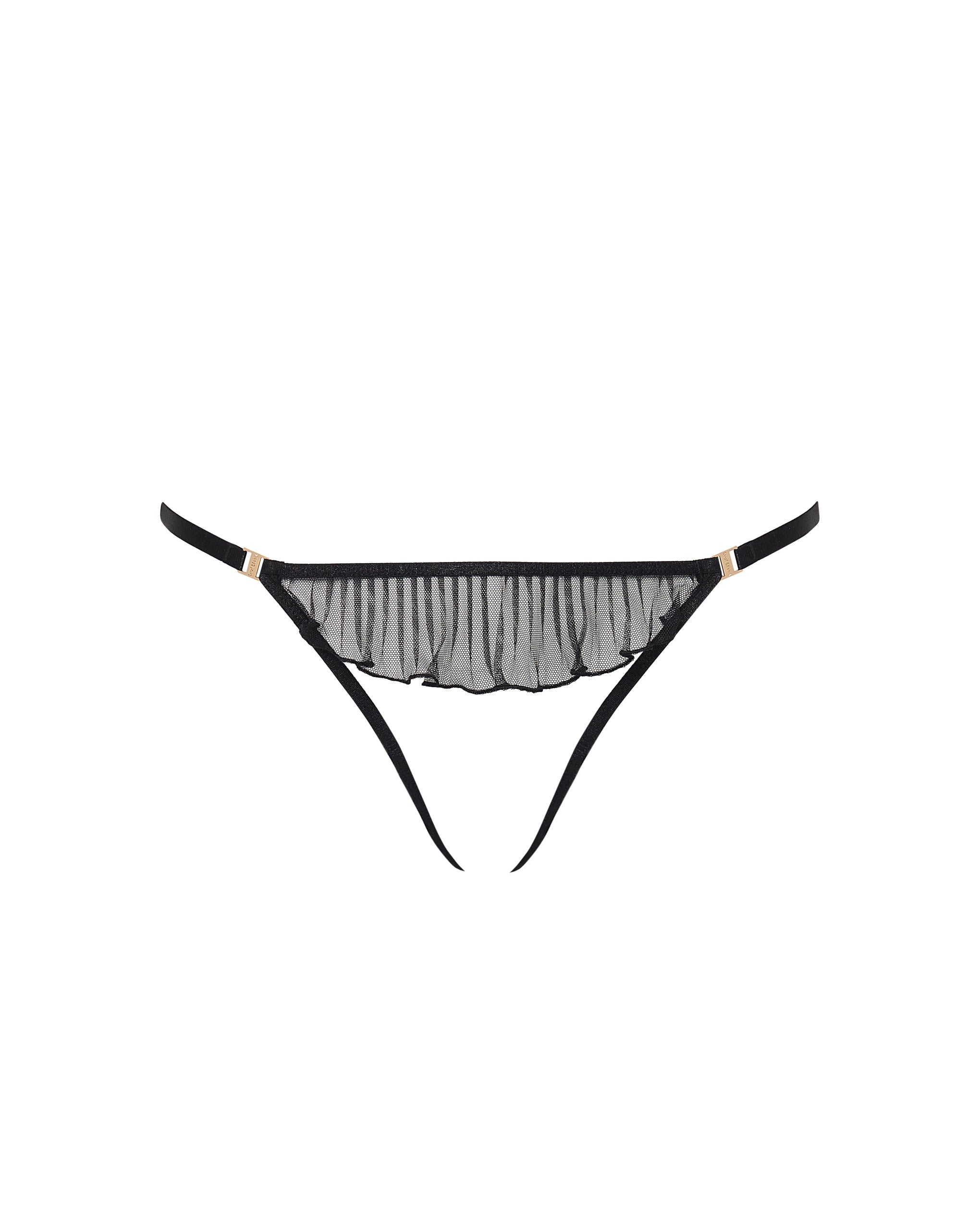 Offering eye-teasing embellishments that steal the spotlight, this style features intricate ruffled detailing to the front and back, finished with elegant gold-tone hardware for a sophisticated look.