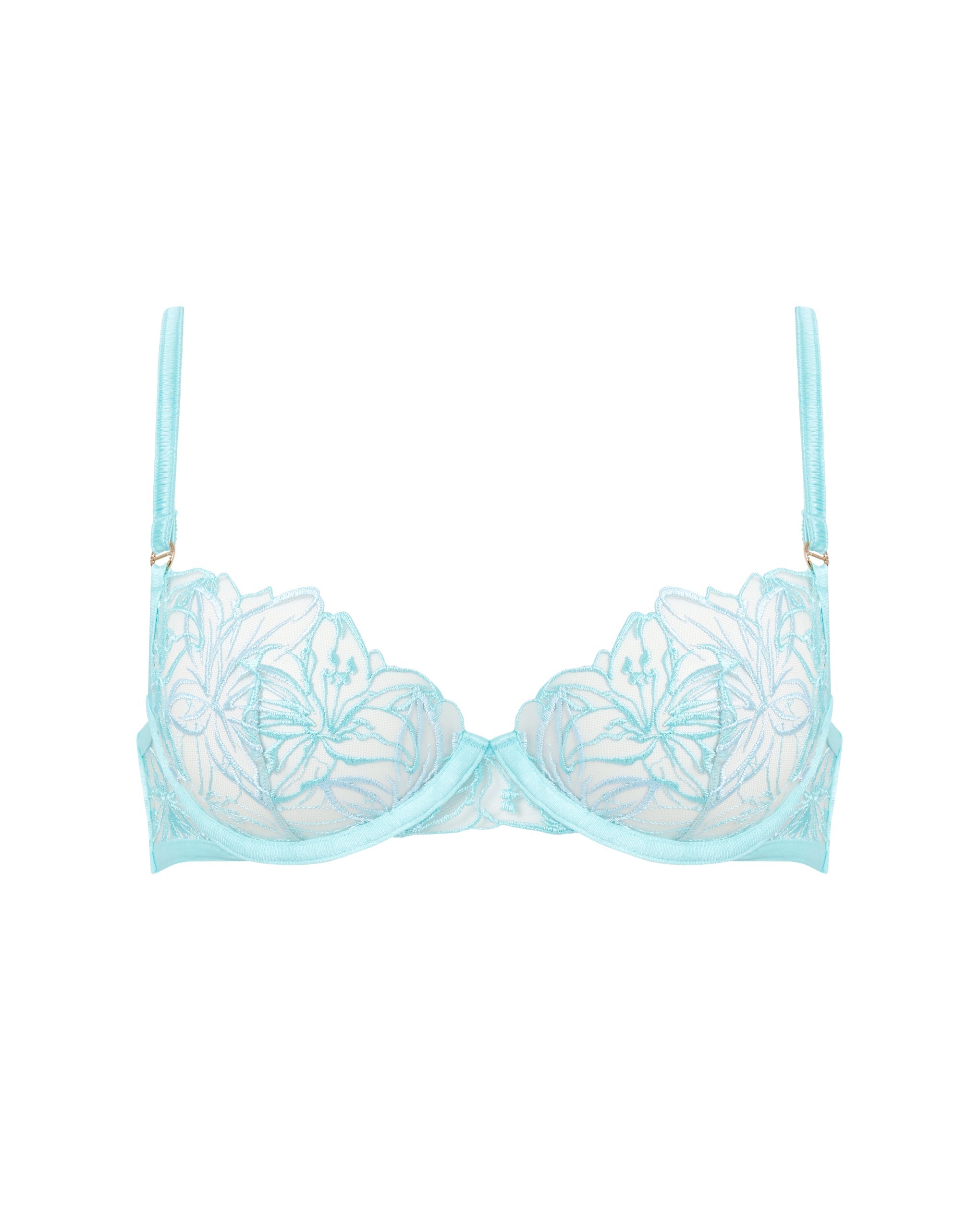 This underwired bra features adjustable straps and a hook-and-eye fastening for a personalized, supportive fit that offers a subtle lift, crafted with intricate floral embroidery and a soft satin feel.