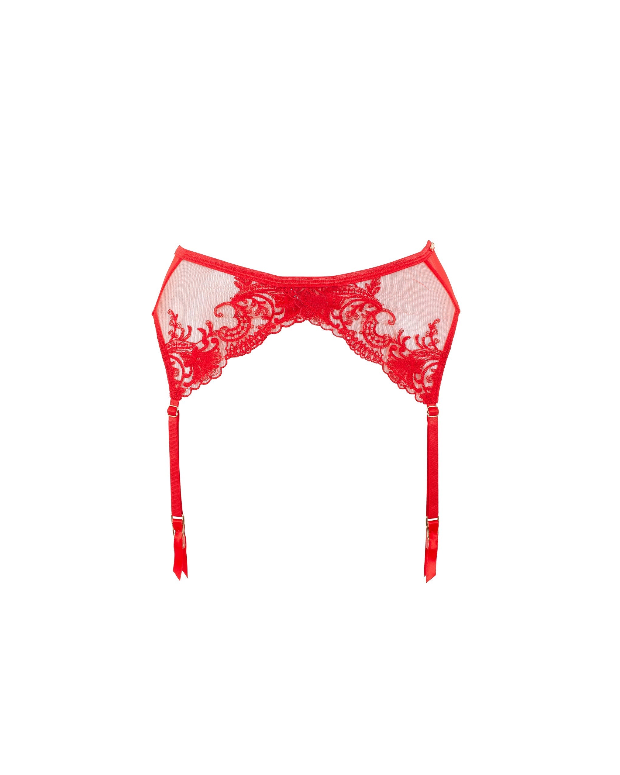 Adjust the suspender straps with their gold-tone clasps and satin ribbon flashes to pair perfectly with your favorite lingerie and hosiery for a complete, gorgeous look.