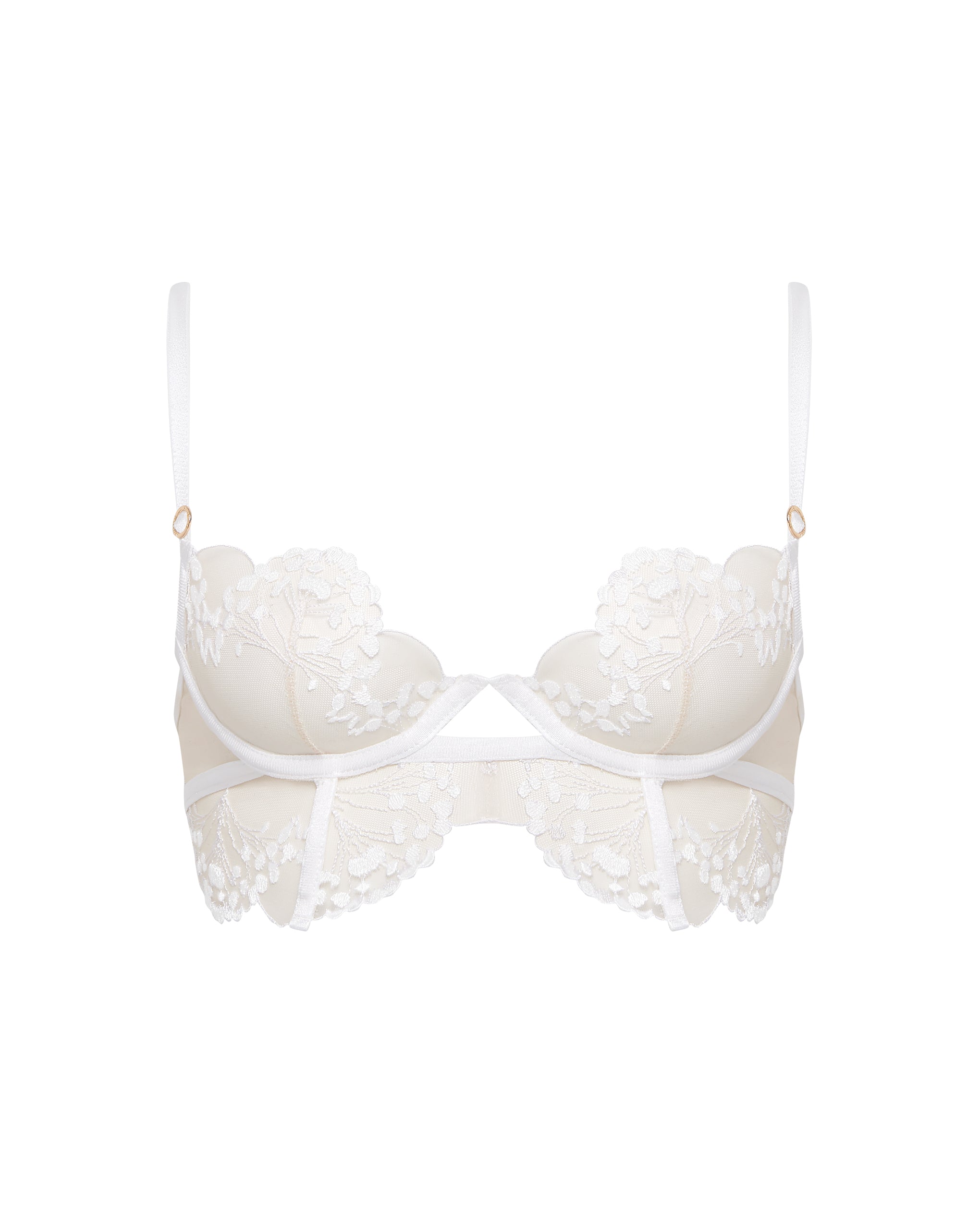 Wear it as a stunning piece of bridal lingerie, for a special occasion, or to elevate your everyday with a touch of intricate beauty. Complete the look with the matching briefs, thong, and suspenders for a fully coordinated ensemble.