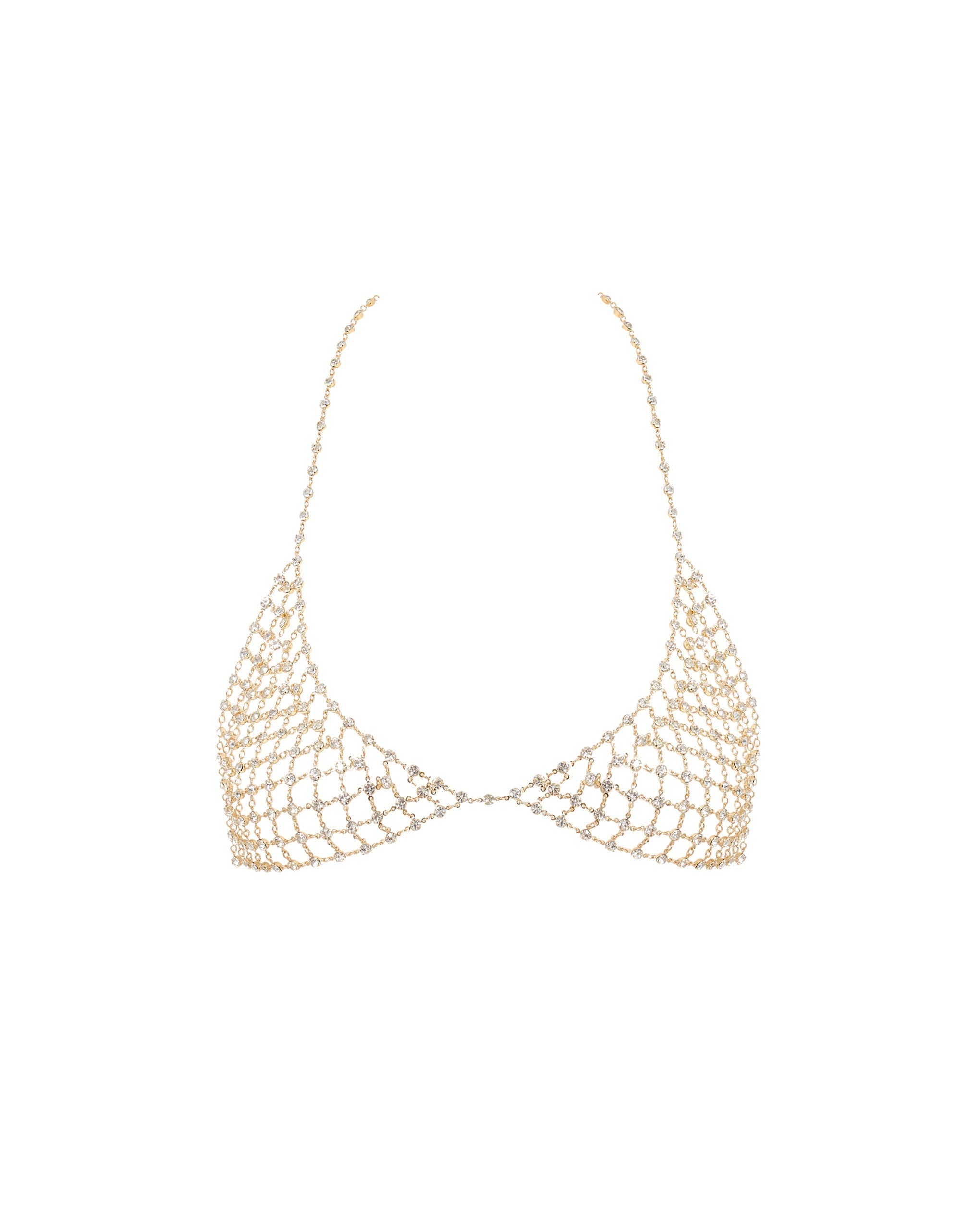 This piece features adjustable straps and a secure hook-and-eye fastening for a personalized and comfortable fit. Please note it requires delicate care and should not be washed.