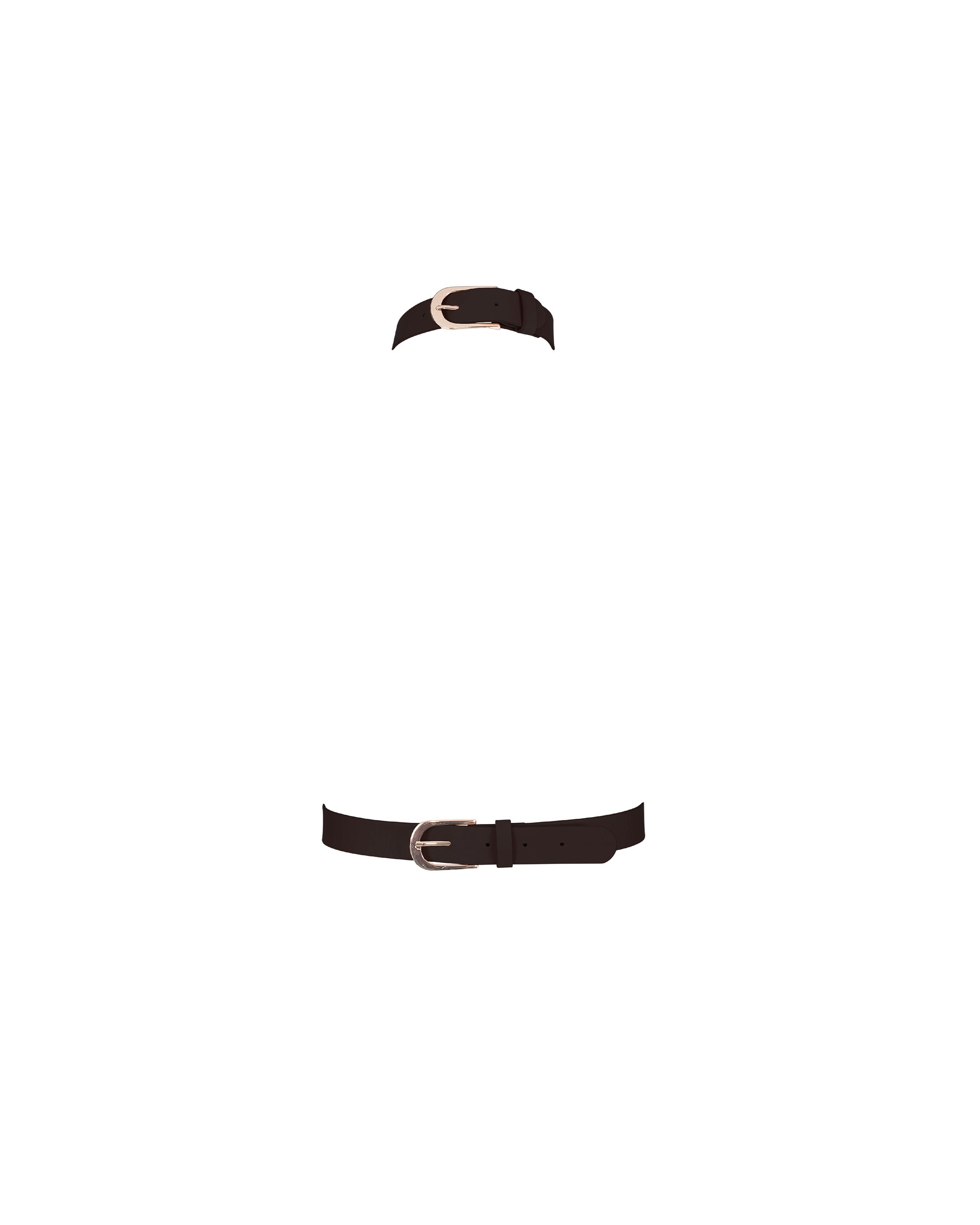 Constructed with wide faux leather panels connected by polished gold-tone hardware, this harness adds a layer of provocative drama to your wardrobe. It features a buckle fastening for a secure and adjustable fit.