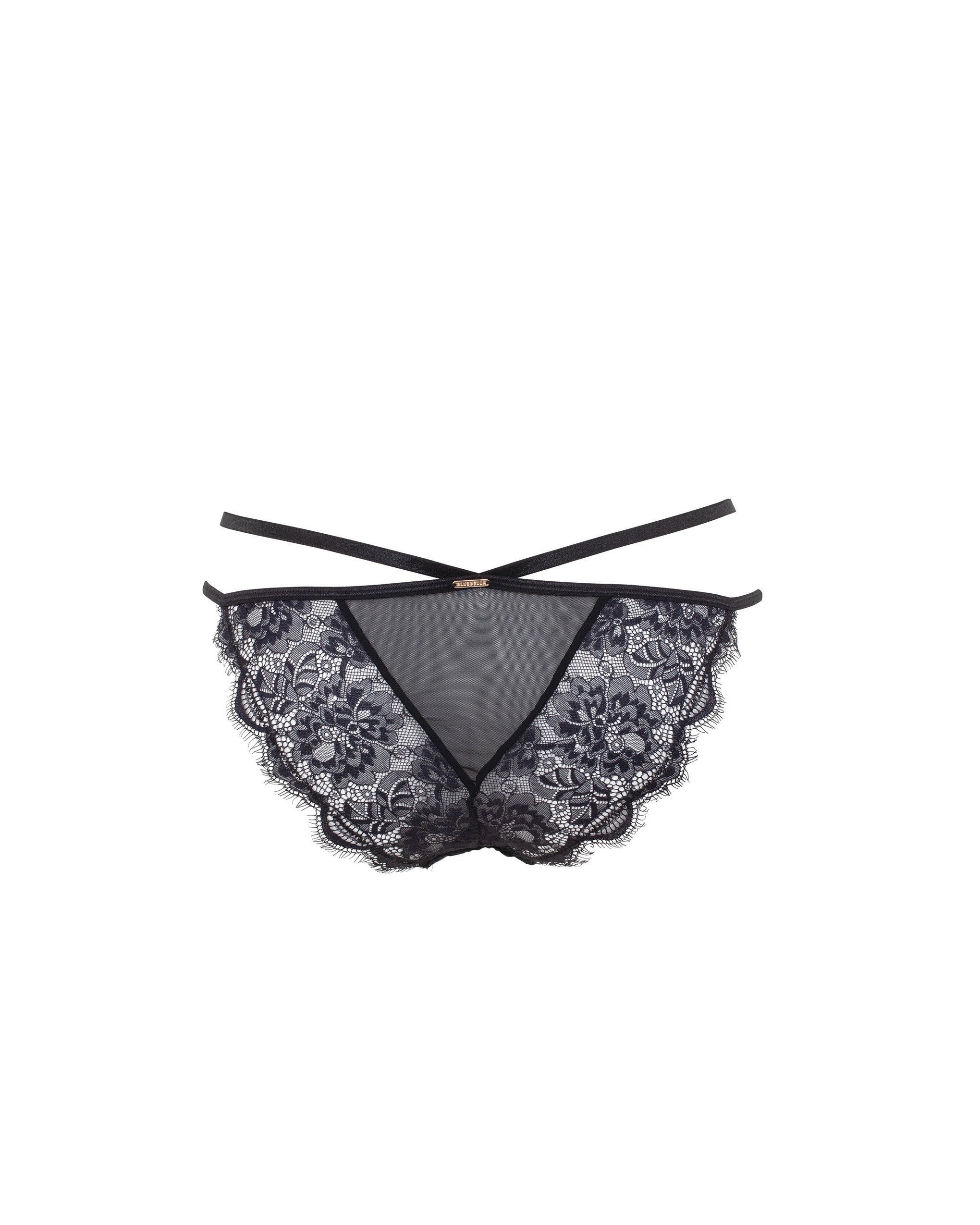 This luxurious lace panty features slimline banding that creates a structural high-waist effect, while embroidered leaf appliqué and delicate, provocatively sheer eyelash lace create a soft and intricate look. A sheer mesh back panel adds structure and definition, and it's fully elasticated for comfort and a perfect fit.