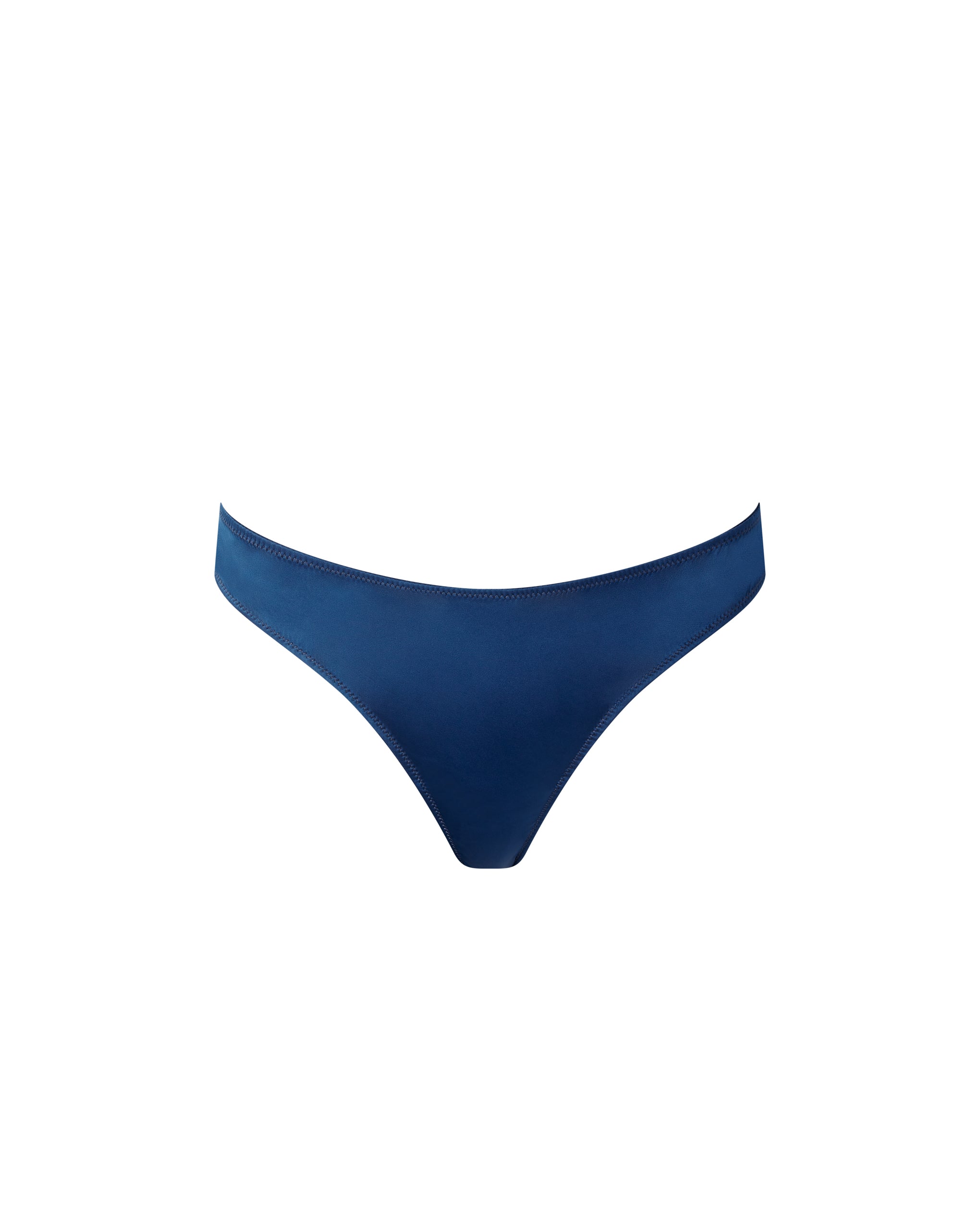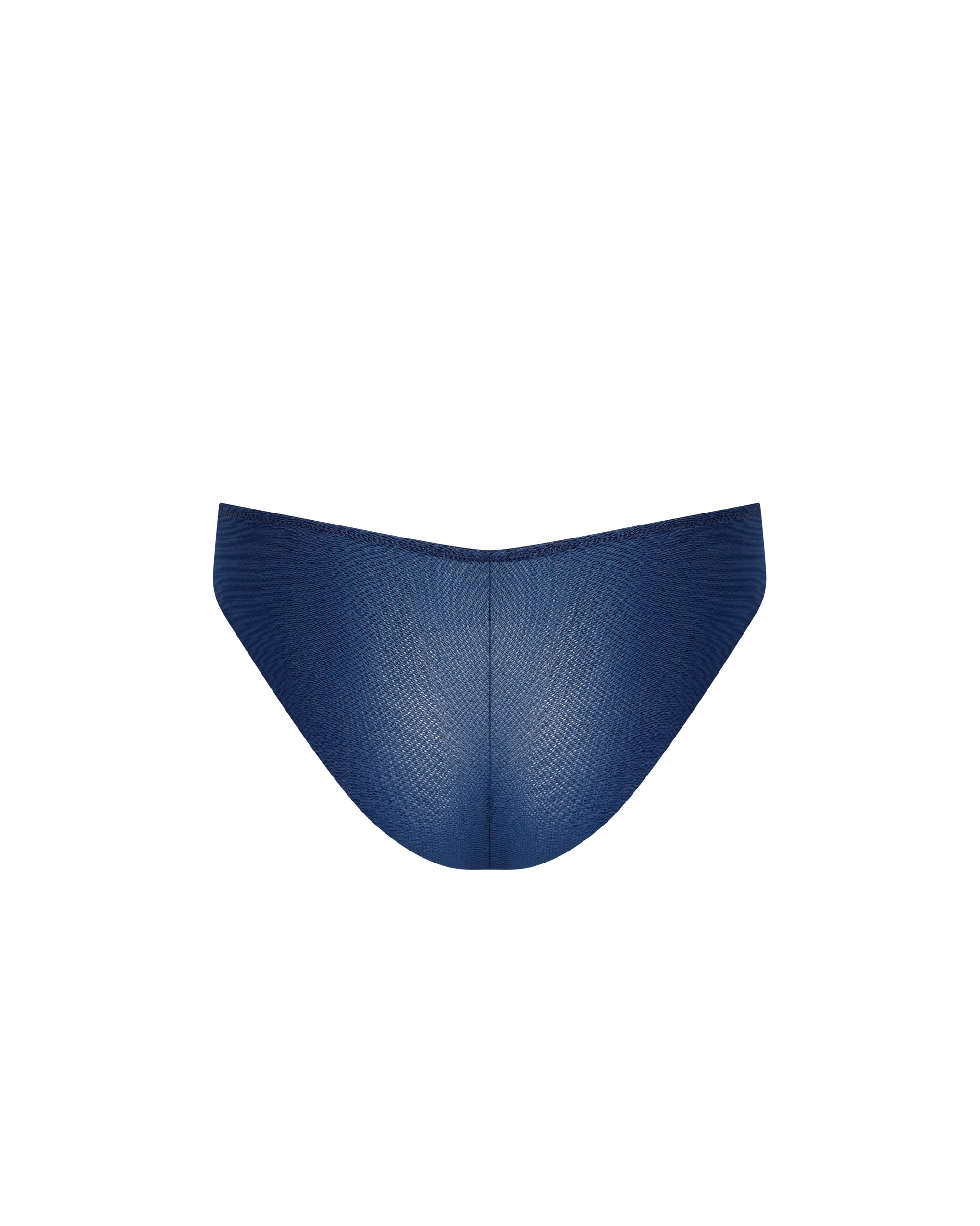 Crafted from smooth satin at the front with a sheer stretch mesh back for breathability, featuring a dipped waistband and a soft bamboo gusset for all-day ease. It offers a flattering, line-free fit that stays in place without riding up.