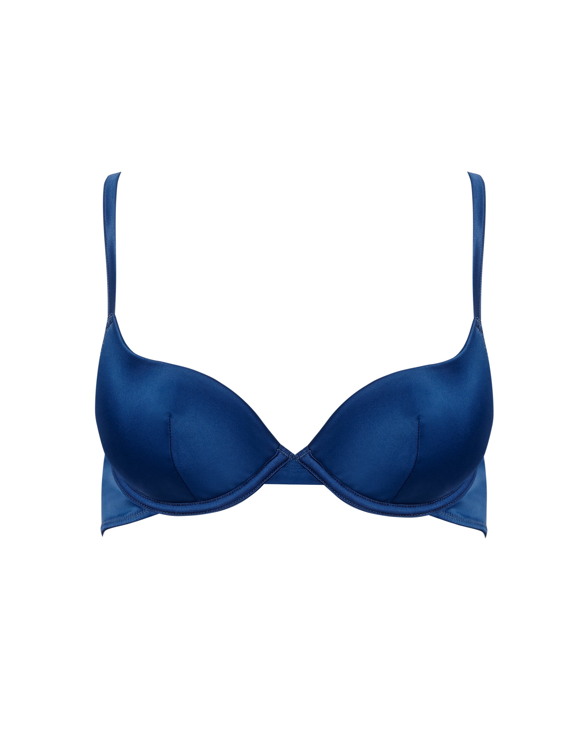Crafted from lustrous satin with a bespoke curved shape, this push-up bra features removable cookies for adjustable lift and enhanced contouring, offering subtle structure and timeless style.