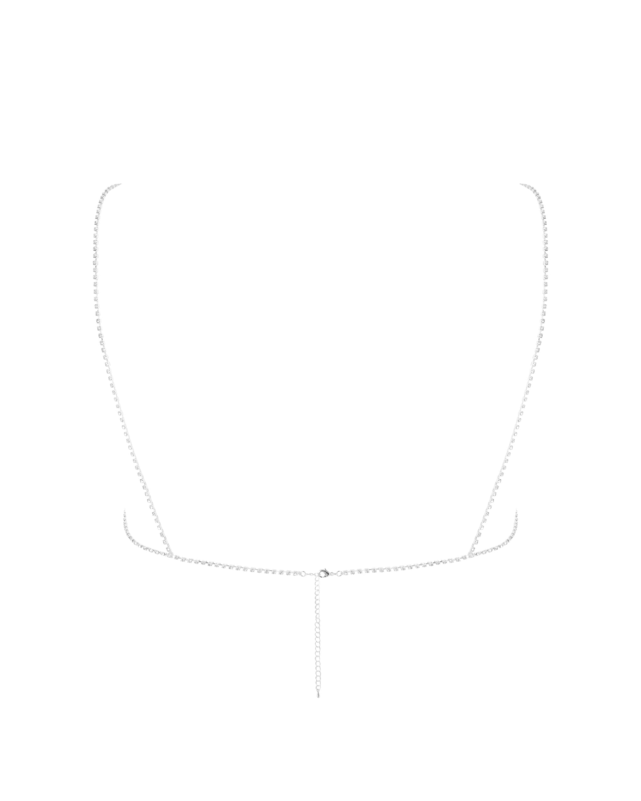 This open cup bra features shimmering draped diamante chains that catch the light with every movement, creating a captivating showgirl glamour. The adjustable straps and rear clasp ensure a secure and flexible fit for comfort.