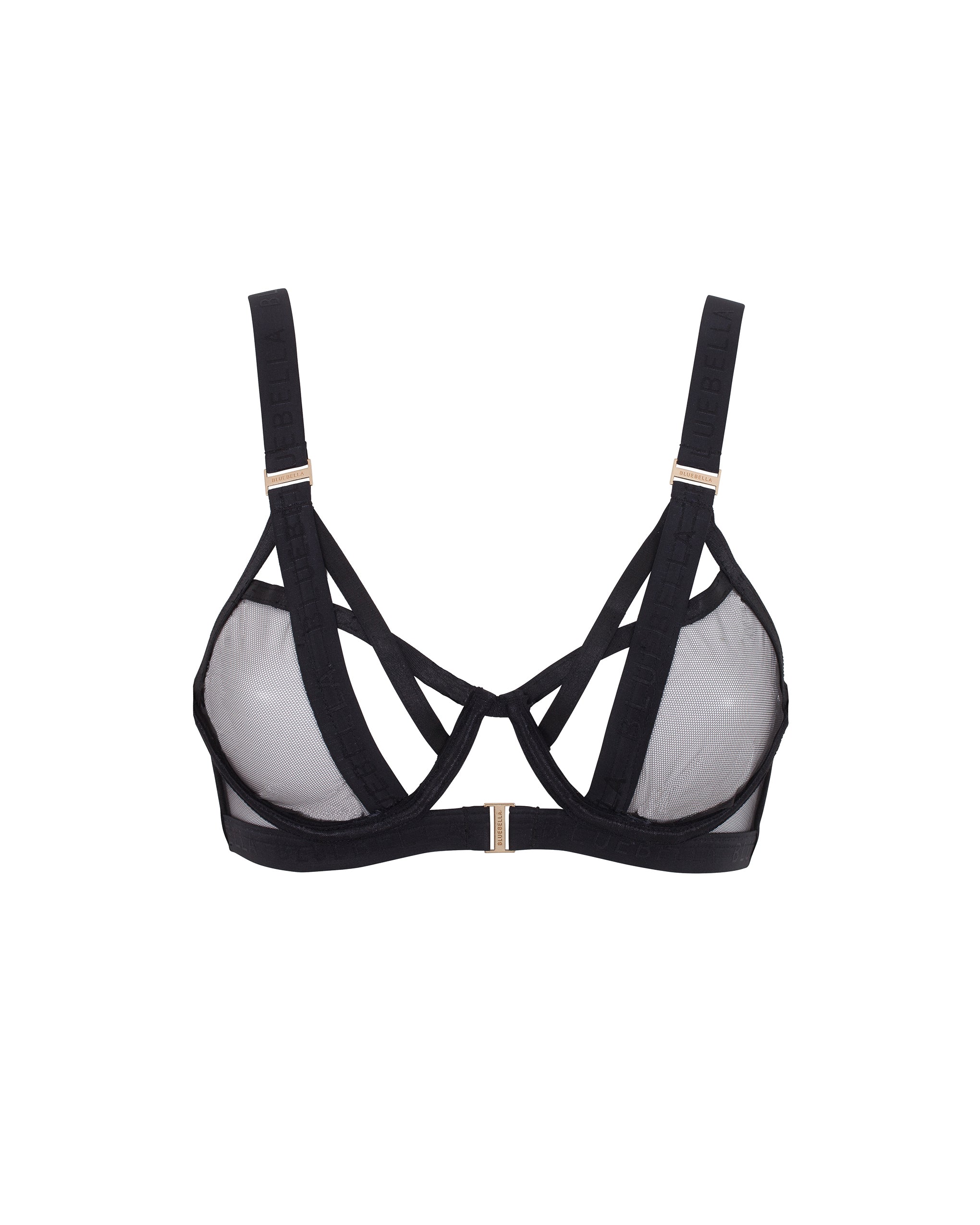 Style this sleek piece with matching bottoms for a complete look, or let its bold straps and sheer mesh peek from beneath a blazer for a touch of daring sophistication.