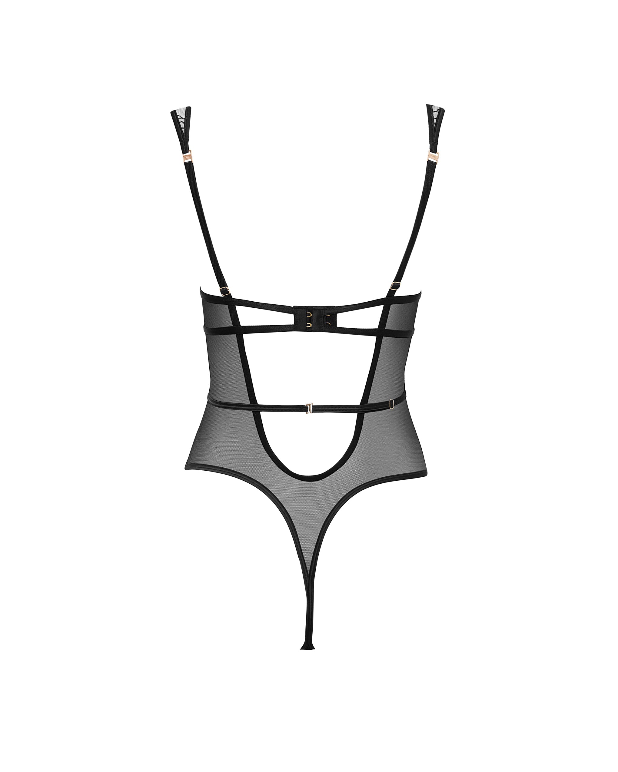 Layer it under a blazer for a sophisticated edge, or wear it alone as a statement piece for a special night out. The sheer panels and thong design create a look that is both bold and refined.