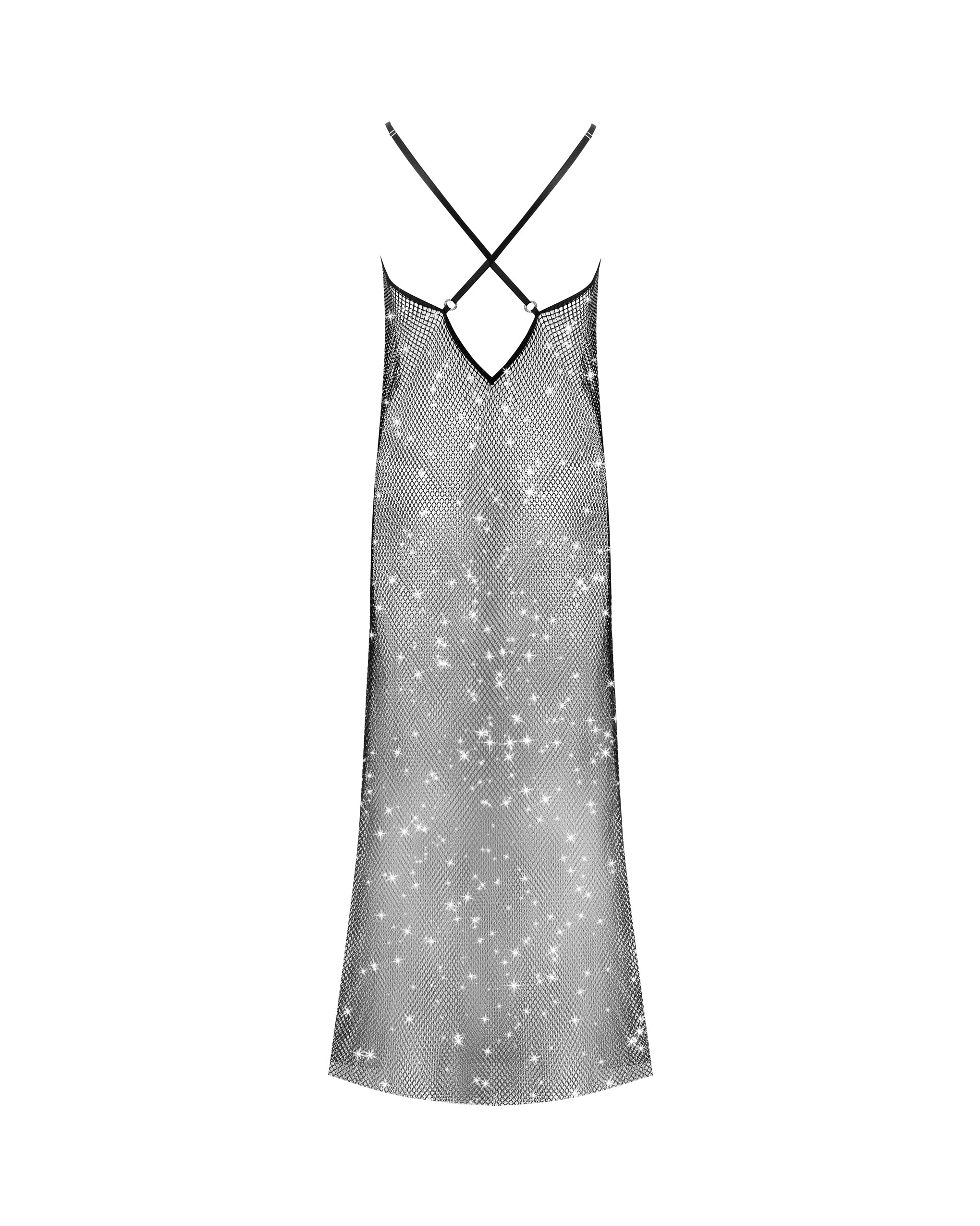 Crafted from a soft fishnet mesh with a fluid, weighted drape that moves with you, scattered with sparkling rhinestone embellishments for a touch of modern glamour.